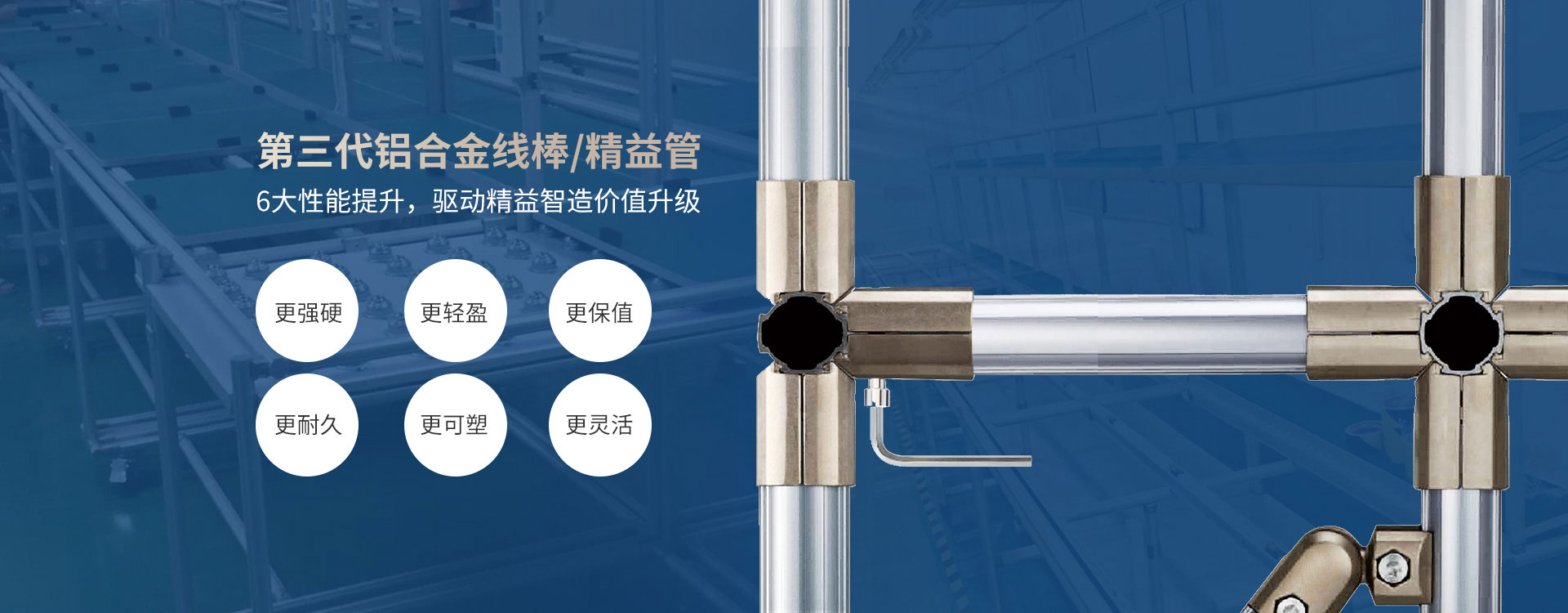 主營產品:燕尾槽管(第三代線棒),金屬連接件及鋁制連接件等,及組裝的各式成品和精益設備周邊產品。